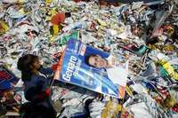 Trabajadores de limpia del DF ordenan la basura electoral recogida en las calles de la ciudad desde el 3 de julio, luego de los comicios del domingo pasado
