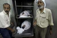 Cadáveres de dos jóvenes palestinos abatidos por un ataque del ejército israelí contra Beit Lahiya, norte de la franja de Gaza