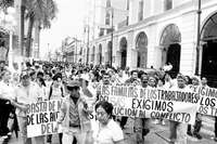 Veracruz, Ver., 10 de julio. A cinco días de haberse declarado en huelga, trabajadores sindicalizados del Sistema de Agua y Saneamiento Metropolitano (SASM), que da servicio a los municipios de Veracruz, Boca del Río y Medellín de Bravo, marcharon por las principales calles de esta ciudad para exigir solución a sus demandas.