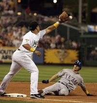 Michael Young llega quieto a la tercera, luego de su triple productor de dos carreras