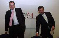 Anatol von Hahn, vicepresidente de la Asociación de Bancos de México, y Marcos Martínez Gavica, presidente de la ABM, ayer en conferencia de prensa. Martínez Gavica dijo que puede haber volatilidad en los mercados financieros en tanto no se defina al ganador de la elección presidencial. "Los procesos electorales, y más si son cerrados, causan volatilidad y no veo por qué no pase eso en México", pero cuando hay una economía tan sólida como la mexicana, es posible que haya volatilidad sin que se afecte la estructura productiva del país, añadió