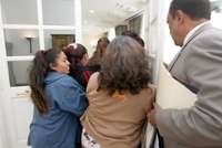 A través de la puerta de cristal se escuchaban los gritos de las mujeres, quienes recriminaban directamente a Moreno Uriegas y a Beatriz Paredes el que se hable con orgullo que hubo una votación de más de un millón de sufragios. "No nos den más atole con el dedo". De entre sus bolsas comenzaron a aparecer las cartulinas blancas, dobladas en cuatro, con consignas en contra de la presidenta del tricolor capitalino.