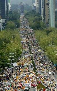 Cuando parecía que la manifestación terminaría de pasar sobre Reforma, decenas de contingentes se incorporaron, produciendo la sensación de que la movilización no tendría fin. Luego de pasar la puerta de los leones del Bosque de Chapultepec, cientos de personas se sumaron a la caminata desde todas las calles que desembocan a Paseo de la Reforma. A esa altura una manta resaltaba: "Marcos, ¿qué no oyes un mandato popular?"