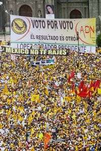 Dos horas después de que la vanguardia de la movilización partió del Museo Nacional de Antropología e Historia, los últimos contingentes comenzaron a caminar rumbo al Zócalo capitalino, sabedores de que era imposible acceder al punto donde finalizaría la concentración, pero conscientes de la importancia de su participación. "No creemos que haya ganado (el candidato panista, Felipe) Calderón, por eso vinimos a apoyar al peje", aseveraron tres de los cuatro integrantes de una familia de la delegación Cuajimalpa, en tanto el cuarto -su perro vestido de amarillo- acompañaba con ladridos los gritos de las personas que se atravesaban.