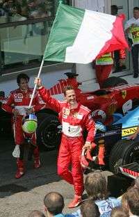 Schumacher festejó con una bandera de Italia