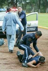Policías egresados del Instituto Técnico de Formacion Policial, de la ciudad de Mexico, realizan una demostración frente a autoridades de la Secretaría de Seguridad Pública, ayer en el campo deportivo del instituto