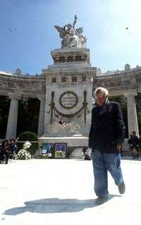 El escritor Carlos Monsiváis en el Hemiciclo a Juárez, en el acto del 134 aniversario luctuoso del Benemérito de las Américas, que se efectuó ayer