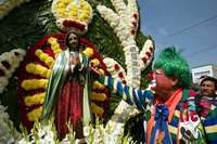 Ni siquiera en la Basílica de Guadalupe los payasos logran mantener la seriedad. La celebración eucarística por su quinta peregrinación consecutiva al recinto mariano se convirtió ayer en un desfile de maquillaje, disfraces, pelucas, malabares y juegos, que resultaron en una fiesta para decenas de peregrinos presentes en el lugar.