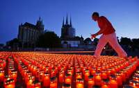 Los avances de investigaciones realizadas en la Universidad de California, en San Diego, podrían aportar datos para nuevos tratamientos. En la imagen, Helman Hoell enciende una de las 11 mil veladoras que formaron el distintivo de la lucha contra el sida, frente a la catedral de María, en Erfurt, Alemania, en un acto auspiciado por la Alianza Alemana contra la pandemia