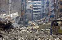 Edificios devastados por bombardeos israelíes en suburbios de Beirut, ayer