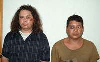 Mateo Díaz López, alias comandante Mateo, líder de la banda de Los Zetas en Tabasco, con Darwin Alejandro Bermúdez Zamora, presunto ex guerrillero nicaragüense y miembro del grupo de sicarios, luego de su detención, el domingo