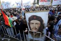 Cordoba, 21 de julio. En un multitudinario acto convocado por la Cumbre de los Pueblos y otras agrupaciones, miles de manifestantes se congregaron en el predio de la Universidad de Córdoba para escuchar a los presidentes de Cuba, Fidel Castro y de Venezuela, Hugo Chávez, quienes cerraron esta noche las actividades que durante cuatro días se mantuvieron en los debates de las cumbres paralelas.