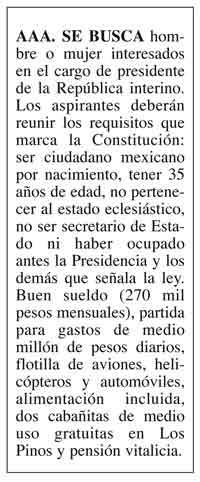 Se busca presidente interino (buen sueldo)