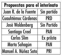 Lo que seguiría es un camino inexplorado: el interinato. Según el artículo 84 de la Constitución, es necesario elegir a un presidente interino ante la falta absoluta de presidente en los primeros dos años del sexenio. Deberá ser nombrado con cierta premura por el Congreso que tome posesión el 1º de septiembre, ya que asumiría su cargo el 1º de diciembre, cuando don Vicente entregue el desgobierno de un país vuelto de cabeza -apenas tendría algunas semanas para organizar un gabinete y trazar algún plan de acción.