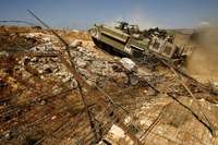 Ampliar la imagen Un vehículo blindado israelí cruza la cerca en la frontera con Líbano en las proximidades del poblado israelí de Avivim, ayer FOTOAp