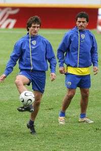 Guillermo Schelotto (izquierda) y Marcelo Delgado, integrantes del Boca Juniors, se alistan para el juego de hoy contra La Máquina