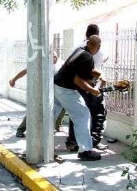 Una mujer y dos hombres que montaban guardia frente al consejo distrital siete en Monterrey, Nuevo León, fueron golpeados por un grupo de ocho sujetos que al parecer son simpatizantes de Felipe Calderón. Los militares que resguardan las instalaciones no intervinieron