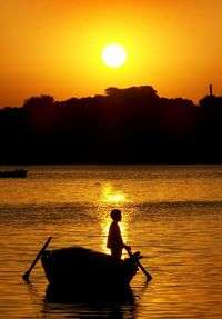 Un joven pescador navega en un bote por el Canal de Suez, en la zona de Ismailia
