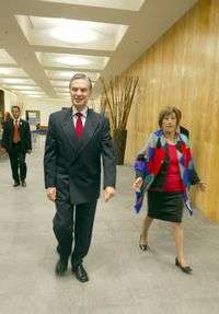 El canciller, Luis Ernesto Derbez, y la subsecretaria de Asuntos Multilaterales y Derechos Humanos, María del Refugio González