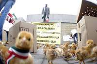 La resistencia civil pacífica impulsada por la coalición Por el Bien de Todos llegó ayer al patio central y al salón de plenos del Instituto Federal Electoral (IFE). Primero, en la explanada, justo bajo la estatua de Benito Juárez y a unos metros del astabandera, fueron colocados cientos de pollos, todos con listones tricolores en el pescuezo.