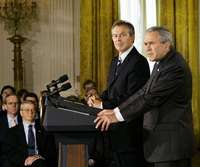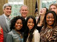 El presidente de Estados Unidos, George W. Bush, recibió en la Casa Blanca al ganador y los finalistas de American Idol, competencia para ser la próxima estrella musical del país. A la derecha, el mandatario y el premier británico, Tony Blair, ofrecen también en la sede del Ejecutivo estadunidense una conferencia de prensa, en la que hablaron sobre la crisis en Líbano