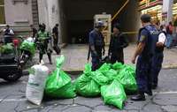 Elementos de Fuerza de Tarea de la SSP capitalina resguardan la droga incautada tras la movilización policiaca realizada ayer en el barrio de Tepito