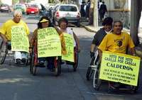 Desde temprano se reunieron para sumarse a uno de los plantones que simpatizantes de la coalición Por el Bien de Todos mantienen en las juntas distritales del Instituto Federal Electoral (IFE). Para Salvador era importante estar ahí: "nosotros también estamos enojados y no vamos a dejar que nos roben la esperanza", dice. La distancia del recorrido no parecía larga -unos cinco kilómetros-, pero cuando se realiza en silla de ruedas, sorteando vehículos, puentes y avenidas, adquiere otro matiz.