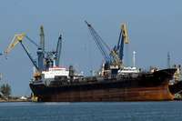 Barco carguero en el puerto de Veracruz