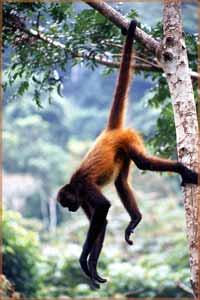 con la larga cola; un mono araña puede brincar varios metros