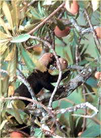 por entre las frondas de los árboles en busca de su alimento