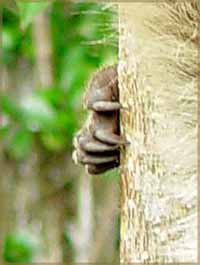 con su cola prensil y desnuda; en sus patas delanteras posee cuatro