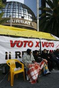 El campamento instalado frente a la Bolsa de Valores