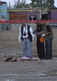 Policías observan el cuerpo de una mujer hallado la madrugada de ayer en Ciudad Juárez