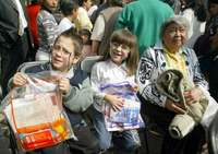 En el Centro de Desarrollo Comunitario "República Española" ubicado en Paseo de la Reforma, a la altura de la colonia Peralvillo y a unos pasos del bloqueo que mantiene el movimiento en defensa del conteo voto por voto, decenas de padres de familia acompañados de sus hijos acudieron a recoger lápices, cuadernos, colores, diccionarios y demás materiales escolares contenidos en estos paquetes.