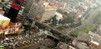 Una larga fila de automóviles fueron desviados hacia el Circuito Interior debido al campamento de la coalición Por el Bien de Todos instalado en el Paseo de la Reforma
