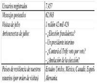 Nuestro Foro México, en Internet, ha venido creciendo rápidamente; podríamos decir, sin caer en exageraciones, que es el más dinámico del mundo de habla hispana en su género de análisis político. El mayor problema que hemos tenido hasta hoy es mantener su pluralidad, todos los días enfrentamos intentos de diversas personas y grupos por ''secuestrar'' el foro a fin de enajenarlo a sus intereses personales o de partido. Por otro lado, su hermano gemelo, el Foro Paisano, hará su debut oficial próximamente en Chicago, en la asamblea nacional de organizaciones de migrantes, a la que hemos sido invitados. Vean estas marcas, se refieren sólo al Foro México: