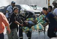Un iraquí es llevado a un centro asistencial después de ser herido gravemente durante un atentado explosivo en Bagdad
