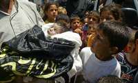 Funeral de un bebé de tres días de nacido (en la imagen) abatido durante una incursión del ejército israelí en el campo de refugiados de Rafah, franja de Gaza