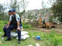 En imagen de archivo, policías municipales resguardan la construcción de viviendas en el parque Los Remedios. Vecinos de Naucalpan aseguran que la familia del ex subsecretario de Normatividad y Medios de la Secretaría de Gobernación, José Luis Durán, ha recurriro a la corrupción y al tráfico de influencias para llevar adelante el proyecto