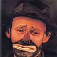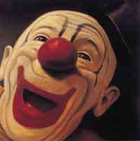 Oleos de Yishai Jusidman, arriba; la tercera imagen es una obra de Francisco Pinna de la serie de fotografías realizadas para Los payasos (1972), de Federico Fellini, como la que aparece sobre estas líneas