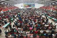 Aspecto de la entrega de documentos que encabezó el jefe de Gobierno del DF, Alejandro Encinas, en la Magdalena Mixhuca
