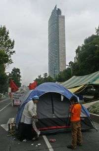 Simpatizantes de López Obrador en uno de los campamentos instalados sobre Paseo de la Reforma