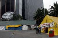 Campamento de simpatizantes de la coalición Por el Bien de Todos instalado enfrente del edificio de la Bolsa Mexicana de Valores, en Paseo de la Reforma