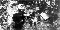 El pintor Jackson Pollock durante su trabajo artístico, el cual realizaba en el suelo, ca. 1950, imagen tomada del libro Lives of the great 20th-century artists
