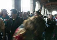 Personal administrativo del Gobierno del DF desaloja el inmueble del Antiguo Ayuntamiento, en el Zócalo, debido al sismo ocurrido ayer en la manaña
