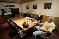 Ampliar la imagen George W. Bush, y su asesor de Seguridad Nacional, Stephen Hadley, durante una videoconferencia, desde Crawford, Texas, con el premier británico, Tony Blair, el pasado domingo FOTOReuters