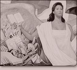 ¿Por qué menciono cosas que no parecen tener que ver con la patria? Porque todo adquirió sentido un día que salí del Palacio de Minería, después de dar clases de literatura (debo aclarar que la convergencia ocurrida entre Minería, el art nouveau del munal, El Caballito y el Edificio de Correos, especialmente si es vista en dirección oriente-poniente, bajo la lluvia y en buena compañía, me parece parte de un rincón de Viena: al fondo se perciben un costado del Palacio de Bellas Artes y la fronda súbita de la Alameda; el caso es que esa visión nunca dejó de hacerme pensar en la Michaelerplatz y el Hofburgtheater, de apariencia tan semejante a la plaza capitalina que comento desde la época en que Mozart estrenó Don Giovanni). En la esquina oriental, bajo una atmósfera que, vaya uno a saber por qué, me parece Madrid, París o Viena pero no Ciudad de México, hay un puesto de periódicos sobre la calle de Tacuba y en él me topé con esa colección de calendarios ilustrados con óleos de Helguera, abundantes en figuras autóctonas: Nobleza indígena, Joven maya, Matrimonio náhuatl, La leyenda de los volcanes: hombres casi griegos y mujeres morenas, todas chichis, caderas y volúmenes impúdicos en actitudes sugestivas. Durante esa ojeada distraída a los artículos del puesto de periódicos, confluyeron Delacroix, Xalapa y Mérida, la patria y las madres monumentales, las imágenes de la raza volcadas en mujeres lánguidas y nahuatlacamente fatales bajo la concepción de un dibujo muy de los cuarenta y cincuenta. En ese momento me dije: "esto es, casi, la patria". Y me di cuenta de que había acentuado el artículo femenino.
