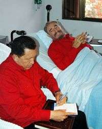 La Habana, 14 de agosto. La imagen sin precedente de Fidel Castro en un lecho de enfermo apareció hoy en una serie de fotografías en el diario oficial Granma y en un video en la televisión, que muestran al líder cubano acompañado de su amigo y aliado Hugo Chávez, quien llegó el domingo a visitarlo.