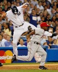 Alex Rodríguez (izquierda) logra un doble play en el encuentro entre Yanquis de Nueva York y Serafines de Los Angeles