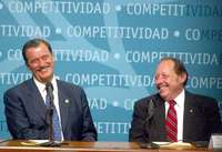 El presidente Vicente Fox acompañado de León Halkin Bider, presidente de la Concamin, durante la suscripción del Acuerdo Nacional para el Desarrollo de Corredores Multimodales para incrementar la competitividad de la economía, realizada ayer en Los Pinos